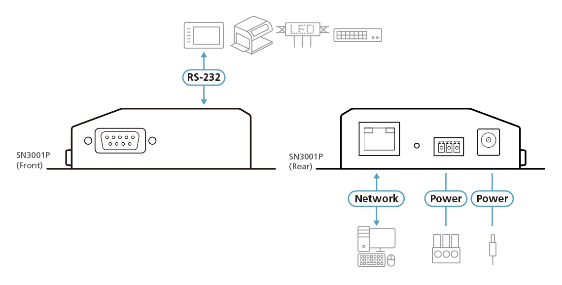 Bezpieczne serwery urządzeń serii ATEN Altusen™ SN3000 to zewnętrzne urządzenia sieciowe oparte na protokole IP, które bezpiecznie łączą starsze urządzenia szeregowe RS-232 z siecią Ethernet, aby uzyskać do nich zdalny dostęp z dowolnego komputera, co pozwala na zwiększenie liczby portów szeregowych dla dowolnego hosta komputer przez sieć.