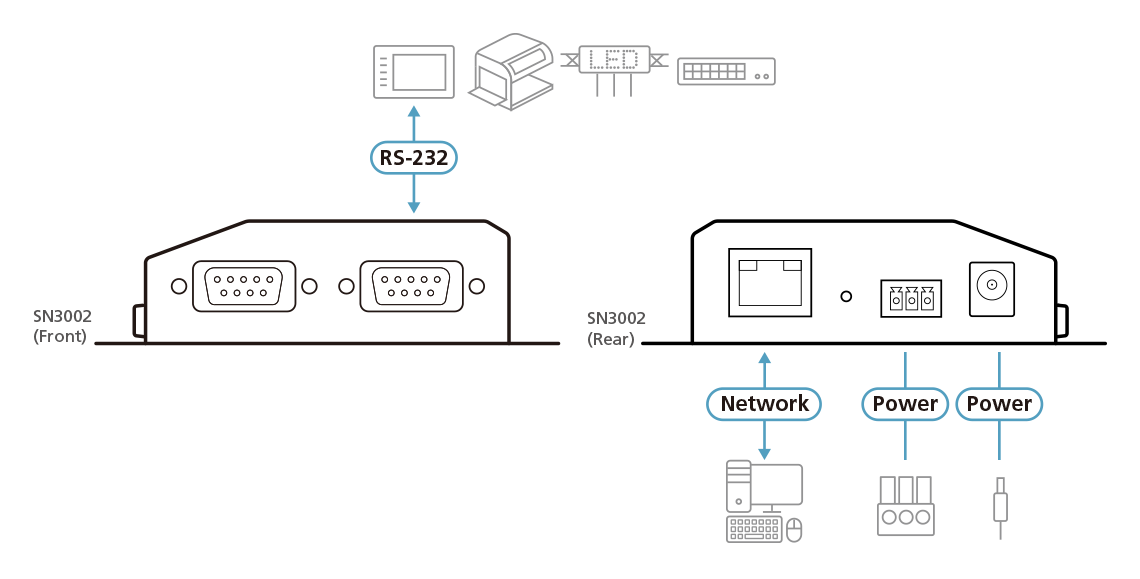 Bezpieczne serwery urządzeń serii ATEN Altusen™ SN3000 to zewnętrzne urządzenia sieciowe oparte na protokole IP, które bezpiecznie łączą starsze urządzenia szeregowe RS-232 z siecią Ethernet, aby uzyskać do nich zdalny dostęp z dowolnego komputera, co pozwala na zwiększenie liczby portów szeregowych dla dowolnego hosta komputer przez sieć.