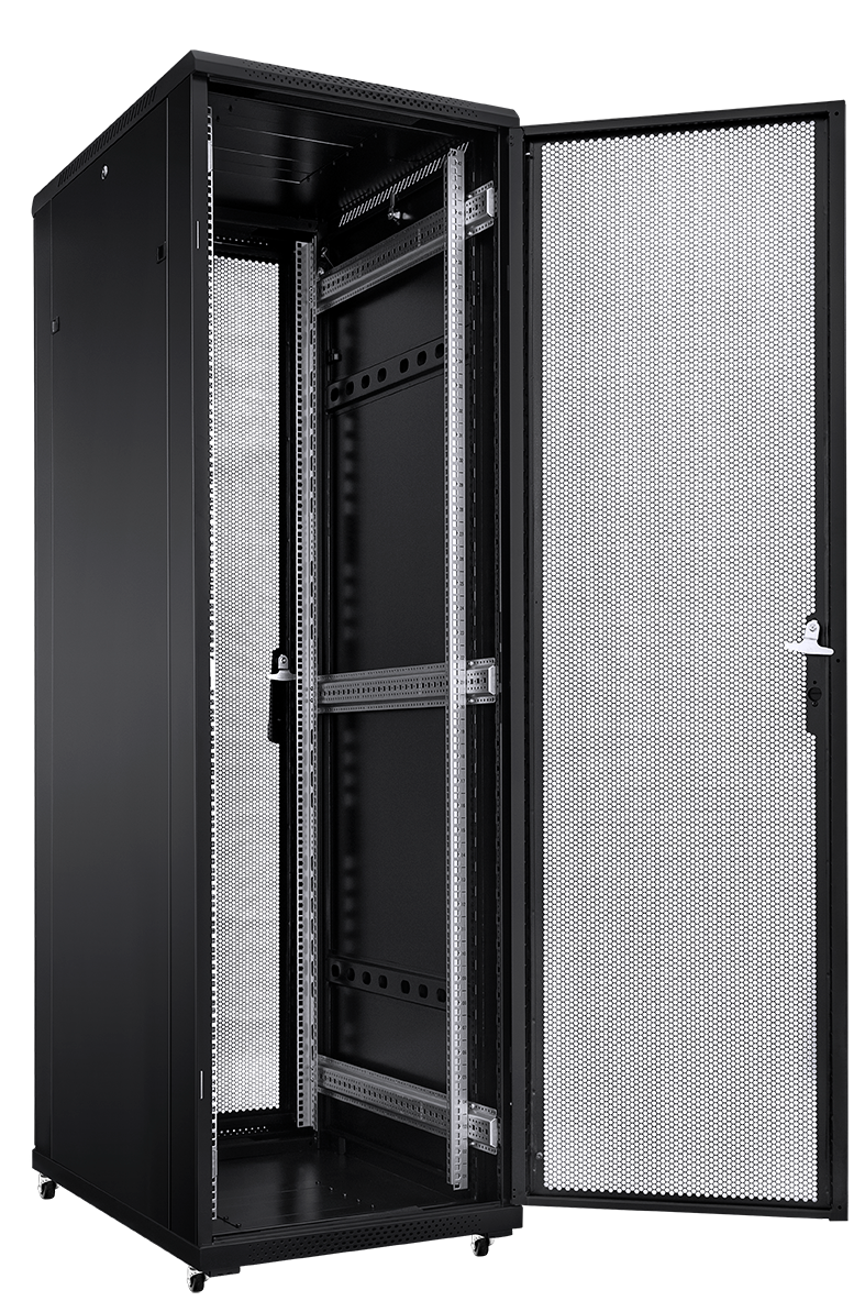 - szafa serwerowa G7 posiada drzwi frontowe z hartowanego szkła z metalową ramą, drzwi tylne metalowe pełne